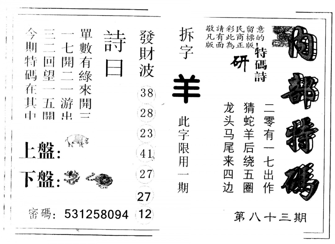 另版内部特码